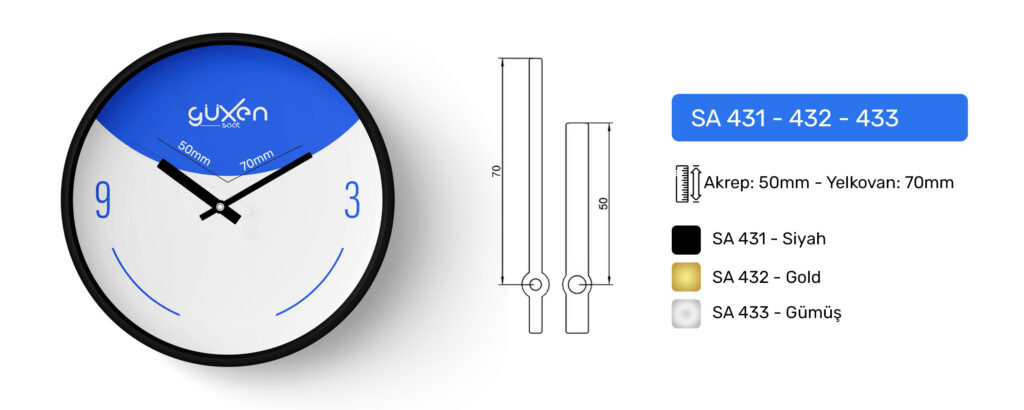 SA 431 gibi ürün kodlarımızla sunduğumuz bu eşsiz setlerle, zamanı kontrol altına alın ve mekanlarınıza estetik bir dokunuş katın. Hemen şimdi sitemizi keşfedin, en uygun saat mekanizması, akrep ve yelkovan setini seçin ve projelerinizi hayata geçirin!
